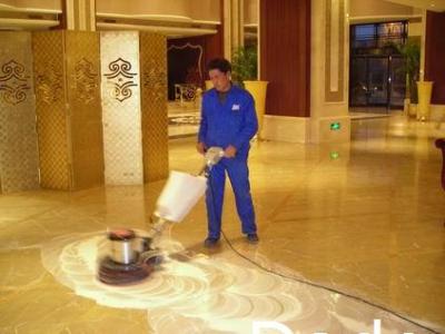 (2)打蠟 使用專業打蠟機配合高級石材護理蠟對石材進行打蠟處理。