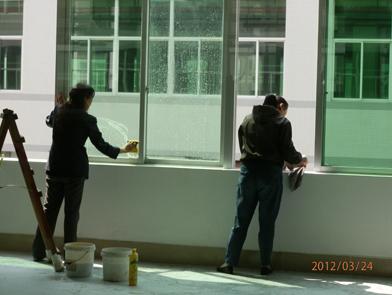 使用抹水器,不銹鋼玻璃刮,晶亮玻璃清潔劑,徹底清除污垢,包括窗框、保護膜的清理,窗戶縫的吸塵,對一些頑固的水泥點膠質(zhì)可用玻璃鏟刀去除,藥水中含有防靜電成分,經(jīng)擦拭過的玻璃,窗框晶瑩光亮不沾灰。