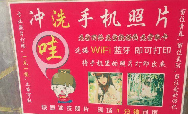 三輪車頂部有一個音箱,不停的播放著音樂和宣傳廣告。這個小生意,主要是“沖洗手機照片”。無需聯網,無需數據線,無需取卡,連接wifi藍牙即可打印,看起來很方便啊。而且一分鐘可取,一元一張,價格也很實惠。