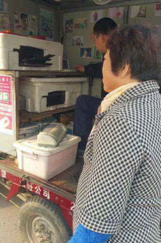 小攤位的生意不錯,一直不斷人。一位農村的大媽花了一元錢,剛剛在這里“沖洗”了一張小孫子的照片,看起來很清晰,而且還給壓膜處理,物超所值。