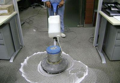 5、用裝有打泡器、地毯刷的單盤掃地機,以干泡刷洗地毯