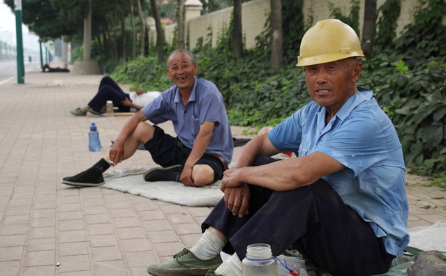 這些農村老人家里還都有地,他們說這個季節正好,麥子還沒有熟,趁著干一段正好,賺點錢收麥子。老人們睡在地上舒服嗎?他們說沒辦法回家太遠時間太短不趕趟,在地上躺一會就跟驢打滾一樣,解解乏就行。他們任勞任怨的干了一輩子,到了領取退休金的年齡還得靠賣力氣賺錢,跟我們的父母一樣,想想很是心酸。農民工們就是睡再這樣的地面上,硌得慌也沒有墊子,下午最熱的兩點鐘就開始干活,直到六點半,這樣高強度的付出賺到120元,除去飯錢比養老金還多16元,難怪他們再苦再累也出來打零工,差距真是太大了,這些老人們還很關注新聞,看到新聞聯播里的生活,他們很羨慕很向往,也有點擔憂美國會不會欺負我們,我們的航母厲害不厲害。