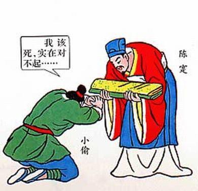 小偷一聽(tīng),嚇得趕快從屋梁上爬下來(lái),跪在陳寔的前面:“陳老爺,對(duì)不起!我知道我錯(cuò)了,請(qǐng)您原諒我!”陳寔不但沒(méi)有責(zé)罵小偷,還非常慈祥的對(duì)小偷說(shuō):“我看你不象是一個(gè)壞人,可能是因?yàn)樯罾Э嗨疲椰F(xiàn)在給你一些錢(qián),你不要再去偷東西了,好好努力,做錯(cuò)事情只要能改過(guò),你還是會(huì)成為一個(gè)有用的人的!”小偷感動(dòng)的哭著對(duì)陳寔說(shuō):“謝謝陳老爺!我一定會(huì)好好努力的!”后來(lái),這個(gè)小偷果然把自己的壞習(xí)慣改掉,努力做事,成為一個(gè)大家都稱(chēng)贊的好青年!