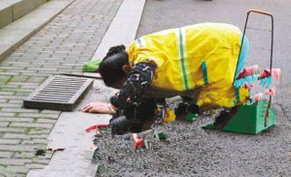 下跪的清潔工