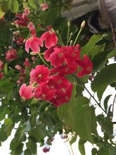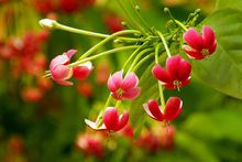 使君子始載于《南方草木狀》,原名留求子,云:“形如梔子,棱瓣深而兩頭尖,似訶梨勒而輕,及半黃已熟,中有肉白色,甘如棗,核大。治嬰孺之疾。南海交趾俱有之。”《開寶本草》始名使君子!侗静輬D經(jīng)》云:“使君子生交、廣等州,今嶺南州郡皆有之。生山野中及水岸。其葉青,如兩指頭長(zhǎng)二寸,其莖作藤如手指,三月生花淡紅色,久乃深紅,有五瓣,七八月結(jié)子,如拇指,長(zhǎng)一寸許,大類梔子而有五棱,其殼青黑色,內(nèi)有仁白色,七月采實(shí)。”