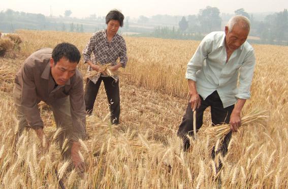 第二層八句,通過具體的一戶人家來展現這“人倍忙”的收麥情景。婆婆、兒媳婦擔著飯籃子,小孫兒提著水壺,他們是去給地里干活兒的男人們送飯的。男人天不亮就下地了;女人起床后先忙家務,而后做飯;小孫子跟著奶奶、媽媽送飯時一起到地里。她們是要在飯后和男人們一道干下去的。這一家在田地里十分忙碌。“足蒸暑土氣,背灼炎天光。力盡不知熱,但惜夏日長。”這四句正面描寫收麥勞動。他們臉對著大地,背對著藍天,下面如同籠蒸,上面如同火烤,但是他們用盡一切力量揮舞著鐮刀一路向前割去,似乎完全忘記了炎熱,因為這是“虎口奪糧”,時間必須抓緊。天氣如此之熱,白天又如此之長,而人們卻竭力苦干,就怕浪費一點時間,可見人們對即將到手的麥子的珍惜程度。“惜”字在這里用得非常好,是用一種違背人之常情的寫法來突出人們此時此地的感情烈度。白居易的《賣炭翁》中有“可憐身上衣正單,心憂炭賤愿天寒”之語,“愿”字的用法與此處“惜”字的用法正同。