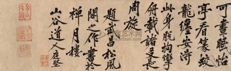 黃庭堅題跋像 宋元符元年(1100年),徽宗即位,起任黃庭堅為監鄂州稅,簽書寧國軍判官、舒州知州,又以受部員外郎召用,他都推辭不就,請求為郡官,得任太平州知州,上任九天就被罷免,主管玉龍觀。黃庭堅在河北時與趙挺之有些不和,趙挺之執政,轉運判官陳舉秉承他的意向,呈上黃庭堅寫的《荊南承天院記》,指斥他對災禍慶幸,黃庭堅再一次被除名,送到宜州管制。