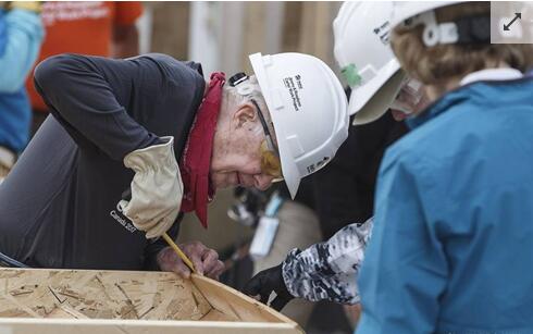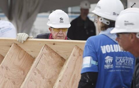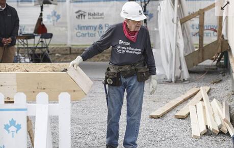 當地時間2017年7月11日,也就是昨天,加拿大埃德蒙頓,美國前總統卡特93歲了,還在加拿大阿爾伯塔省埃德蒙頓充當志愿者與工人一同建造房屋。